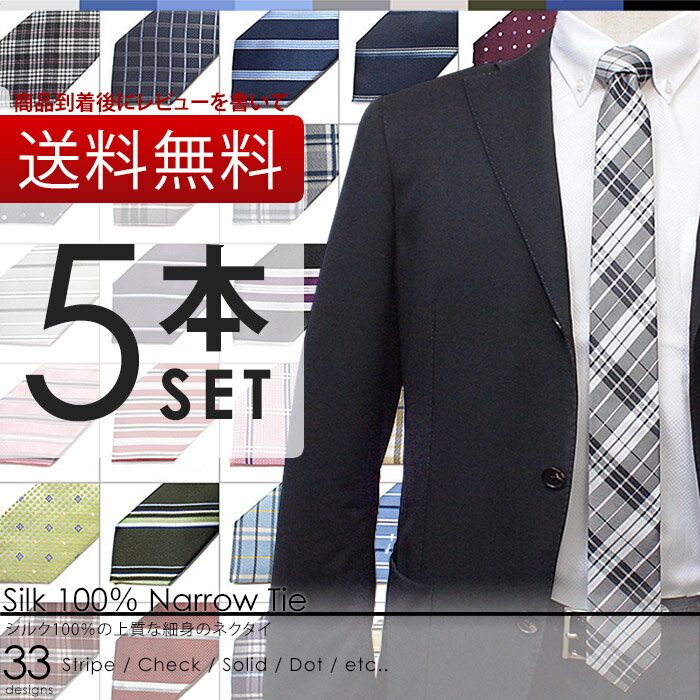 ネクタイ 5本 セット 33柄から選び放題 1本あたり1,000円 レビューを書いて 【送料無料】 人気の 細身 ナロータイ シルク 福袋 ! ビジネス ・ 結...